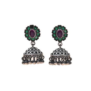 Best Offer on Elegant Jhumka Earring Handcrafted in Spinal Oxidised Silver Red Green Stone Finished with Metallic Beads for Bulk