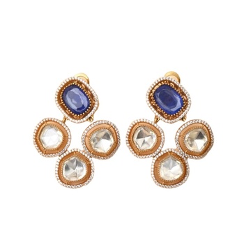 Women's 925 Sterling Silver Antique/Gold Plated White & Blue Moissanite Drops Earrings From India at Discounted Market Price